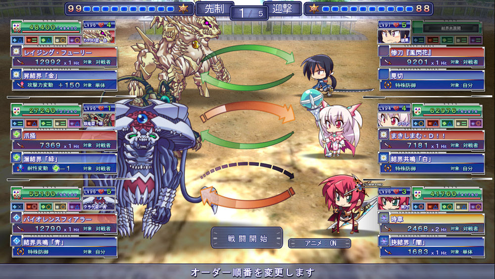 ゲーム中に登場した全ての味方・敵キャラクターで自由にパーティを編成し、