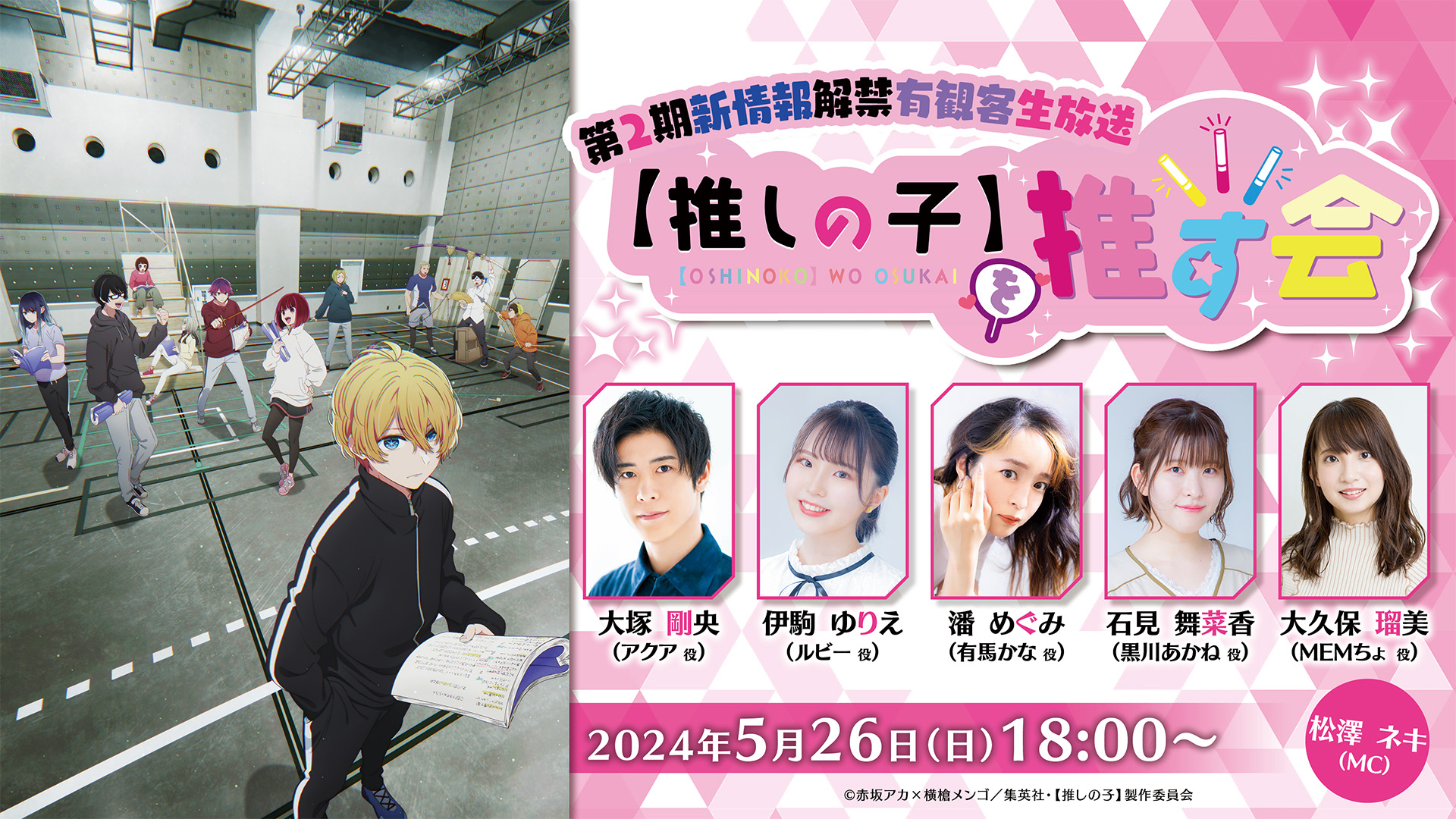 TVアニメ「推しの子」の有観客生放送『【推しの子】を推す会』が5月26日(日)に開催決定。